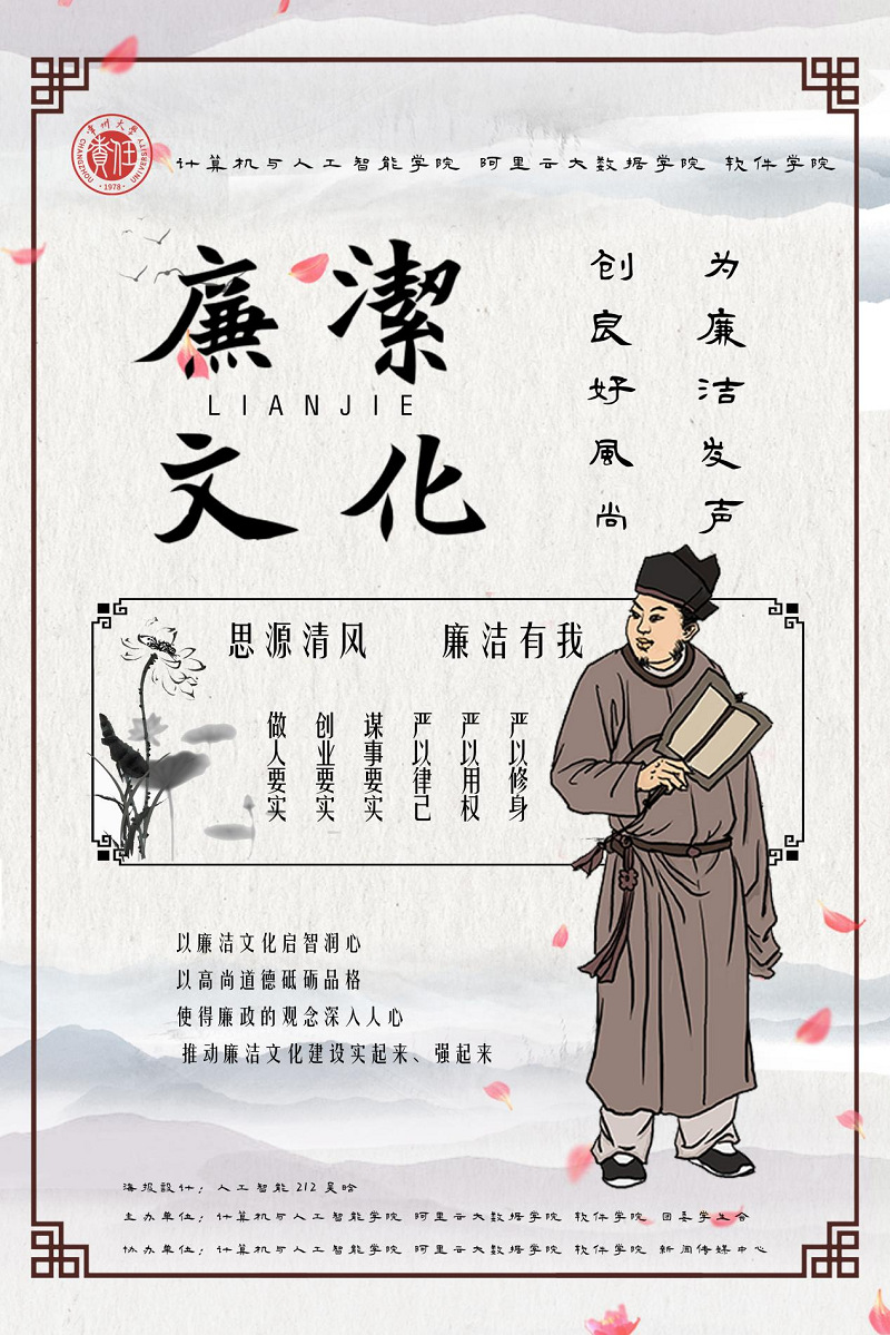 根据校纪委统一部署要求,学院积极开展“廉洁文化宣传月”主题教育活动,繁荣校园廉政文化,树立学院廉洁文化品牌。5月8日—5月17日,开展“廉洁文化”新媒体设计大赛,培养学生崇廉敬德的价值理念,展示学生廉洁自律的良好风貌,筑牢拒腐防变思维底线。