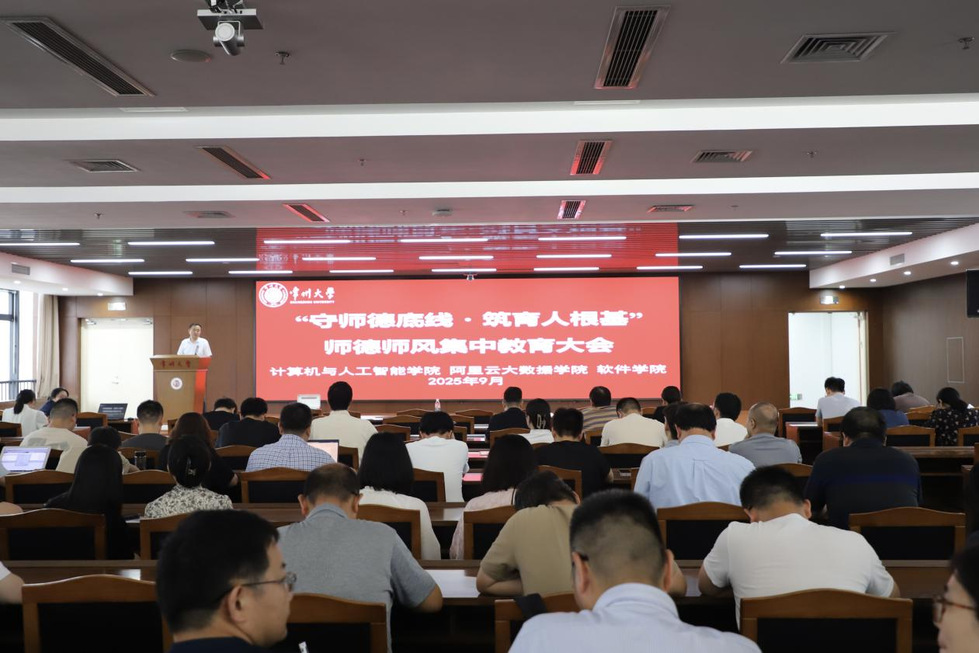 深入贯彻落实常州大学2025年师德师风宣传月活动要求,强化教师职业道德建设,筑牢育人思想根基,近日,大数据学院分工会召开以“守师德底线,筑育人根基”为主题的师德师风集中教育大会。学院全体教职工参加本次会议。