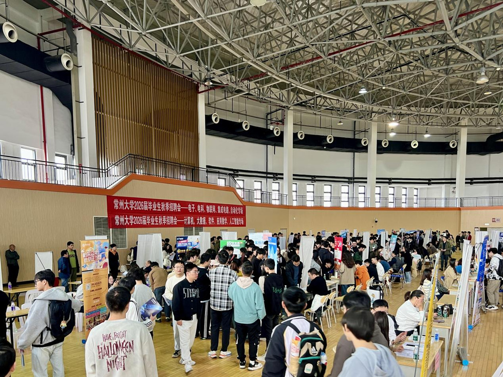为切实做好我院2026届毕业生就业工作,促进毕业生更高质量更充分就业,进一步加强校企合作,帮助用人单位选拔招聘人才,11月5日下午,学院在常州大学西太湖校区体育馆二楼举办2026届毕业生秋季招聘会——计算机、大数据、软件、应用数学、人工智能专场。学院2026届毕业生参加此次招聘会,学院领导,各专业系部主任、专任教师和学工办辅导员到现场与用人单位沟通交流,并对前来应聘的毕业生给予指导。