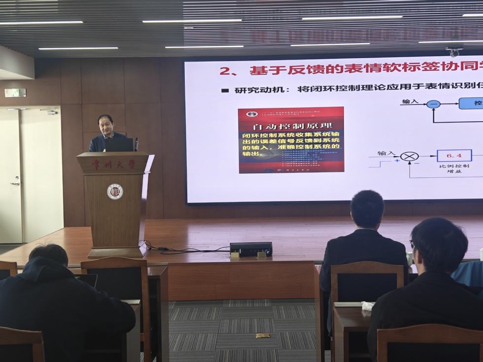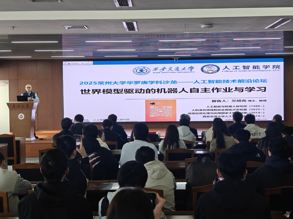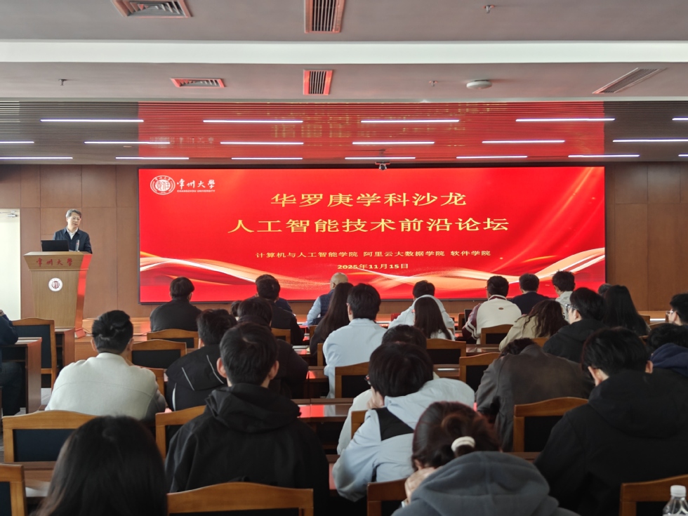 2025年11月15日上午,《华罗庚学科沙龙——人工智能技术前沿论坛》在常州大学西太湖校区白云楼4楼报告厅举行,南京邮电大学副校长、国家杰青刘青山,西安交通大学人工智能学院党委书记、国家杰青兰旭光,南京理工大学计算机科学与工程学院 人工智能学院 软件学院院长、国家杰青李泽超,清华大学长聘教授、海外高层次人才韩军功受邀出席。校党委书记徐守坤、计算机与人工智能学院院长石林、副院长刘毅、学院部分青年博士和研究生共同参会,论坛由石林主持。