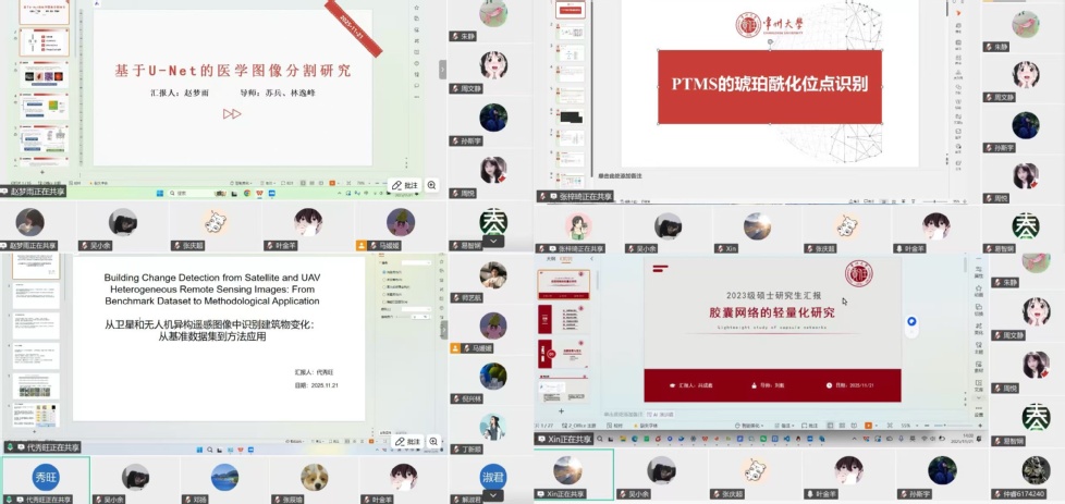 11月21日,院研究生会于线上组织开展研究生学术交流系列活动第四十讲,2023级研究生邓扬、张梓琦、张庆超等九位同学为汇报人,2025级研究生参加。