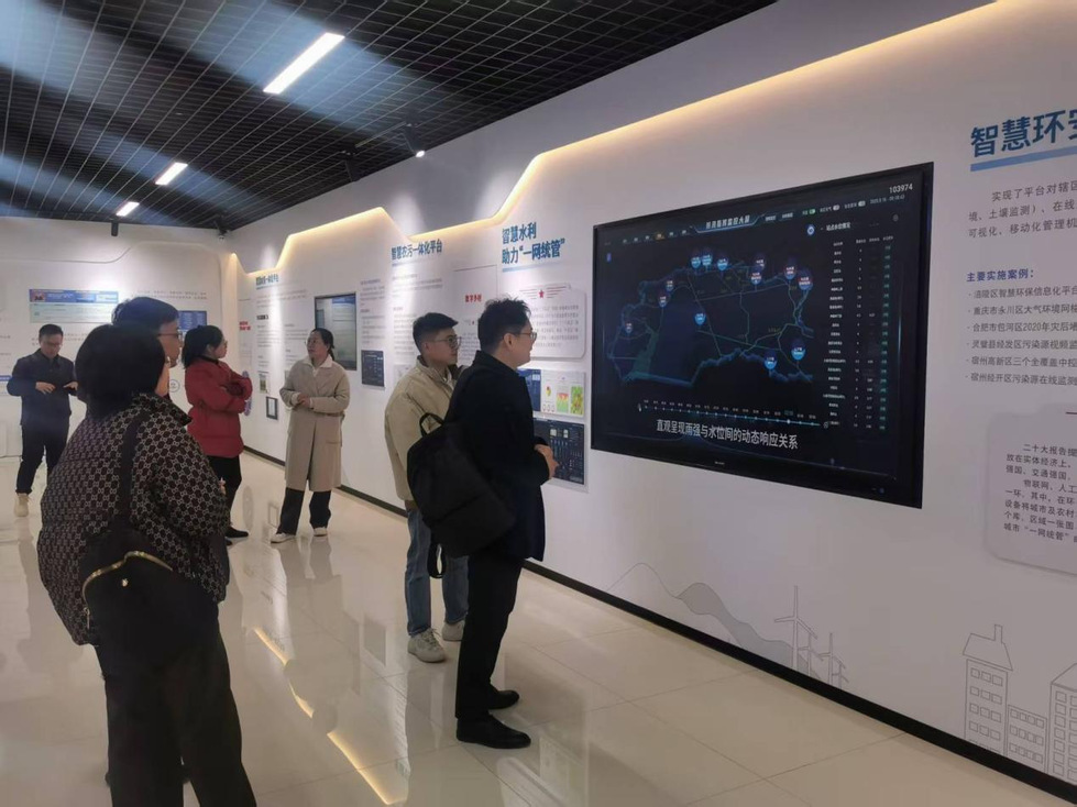 在企业展厅,公司负责人向调研组系统介绍了企业发展历程、核心业务布局,重点展示了在智慧水务、智慧水利、智慧农污、智慧园区等领域的解决方案、技术成果与典型应用案例。