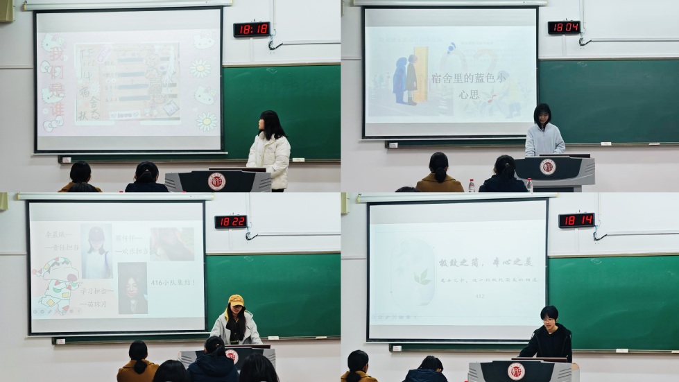 本次活动同学们积极参与,活动初期,根据宿舍的设计、整洁度和美观等方面进行筛选,最终选出10个宿舍进入决赛。活动中,各参赛宿舍代表通过PPT展示、图片分享、视频播放等多种形式,展示各自宿舍的美化创意,彰显出宿舍的个性化风格与温馨氛围。