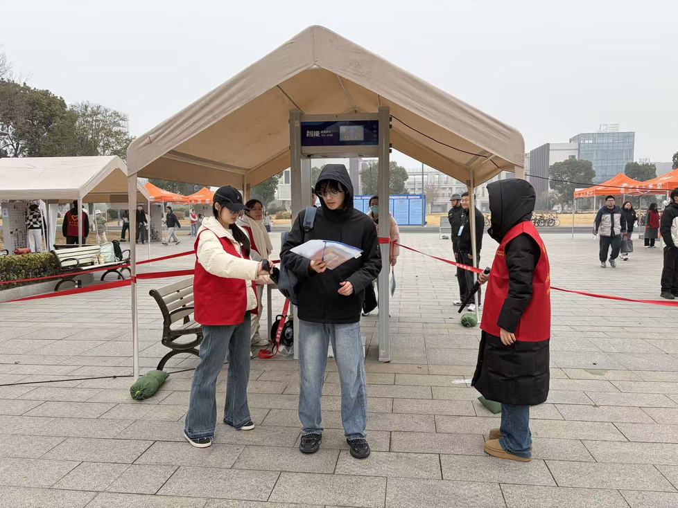 志愿者们克服低温寒潮天气,每日清晨6时30分前到达工作岗位。在送考车辆停车点,志愿者们引导考生有序乘车,并温馨提醒考生携带证件及考试用品。在常州大学西太湖校区考点,他们为考生提供道路指引,帮助考生尽快到达考场。在安检通道,志愿者们协助工作人员维持秩序,耐心解答考生疑问,确保安检流程高效顺畅。